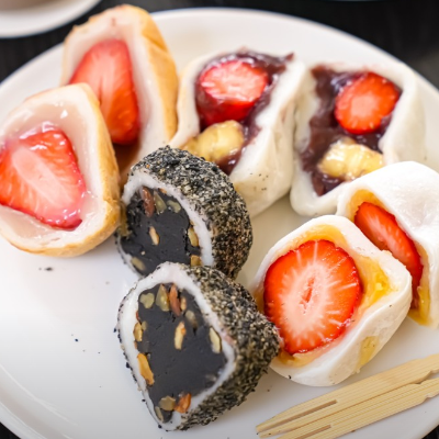 딸기모찌, 크림치즈샤인머스켓모찌 먹었는데 달콤하고 맛있었어요. 모찌의 쫠깃함이 입안가득 퍼집니다.