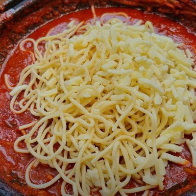 어울리지 않을것 같은 스파게티 사리지만 치즈사리 추가해서 같이 먹으면 꿀맛이에요.