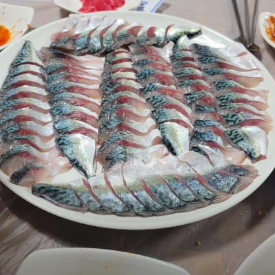 고등어회 처음 먹어봤는데 비리지 않고 괜찮네요. 다만 느끼해서 같이 간 친구는 활어회가 더 맛있다고 했어요.