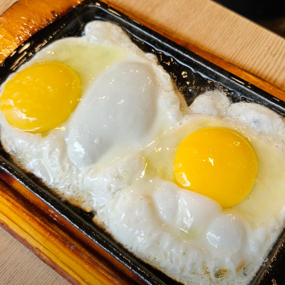 사이드 메뉴를 시키면 철판후라이가 같이 나와요. 저희는 소세지 추가하고 후라이까지 받았습니다.