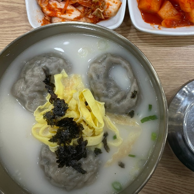 꿩만두곰탕은 안에 닭고기가 들어가서 깔끔하고 국물이 엄청 맛있었어요! 메밀전병도 간장 찍어먹으니 맛있어서 잘 먹었습니다.