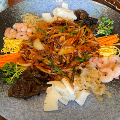 양장피는 여러 해산물과 야채 가 풍성하게 들어있고 약간의 겨자소스를 섞어 먹으니 너무 맛있습니다.