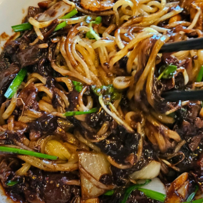 신선한 야채, 해산물과 짜장 소스의 조화가 일품이네요.