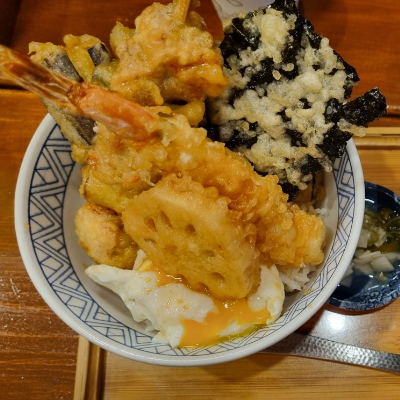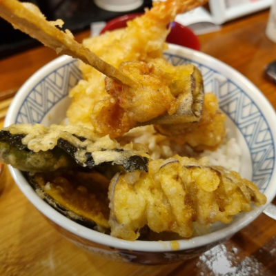 텐동 처음 먹어봤는데 생각보다 하나도 기름지지 않고 맛있었어요. 개인적으로 소고기튀김보다 새우튀김이 더 맛있었어요.