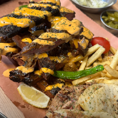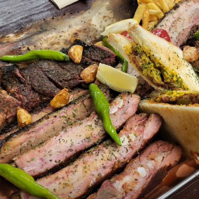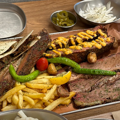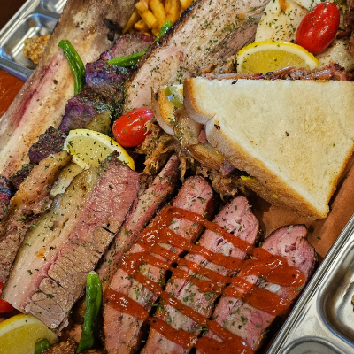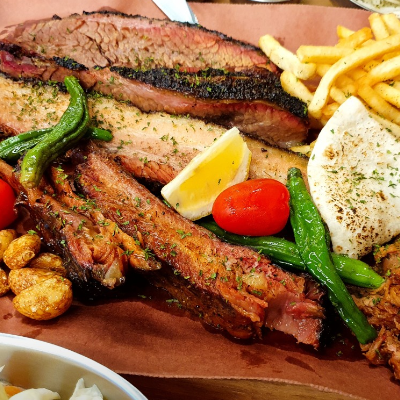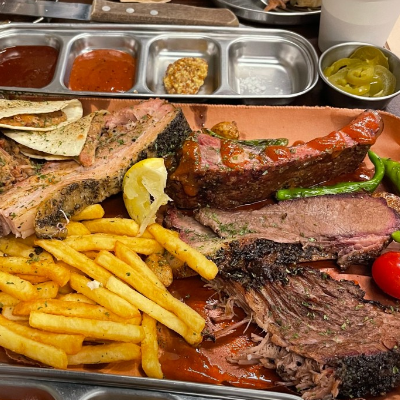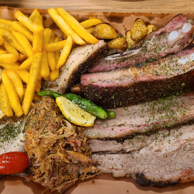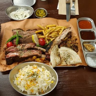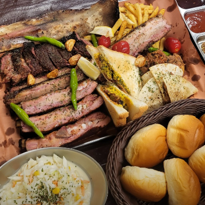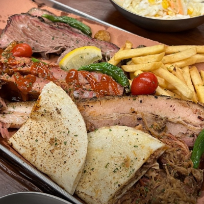 입구부터 너무 특색 있었어요. 3인 가족이라 4인 플래터 시켰습니다. 폴드포크, 비프립,브리스킷, 스페어립 골고루 나와요.