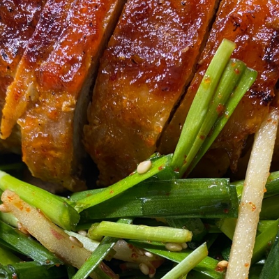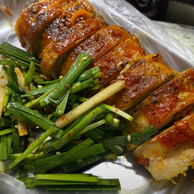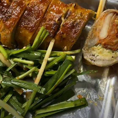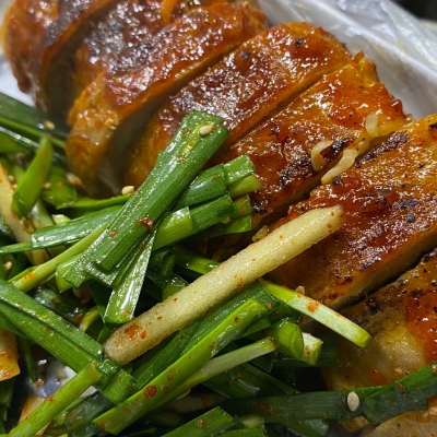 잘 익은 삼겹살에 김치랑 부추랑 먹으니 맛이 너무 좋아요.