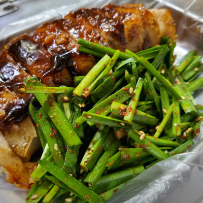 삼겹살과 김치의 조합이라서 맛이 없을 수 없어요. 소스도 잘 뿌려져서 나옵니다. 부추무침과도 잘 어울립니다.