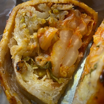 삼겹살과 김치의 조합이라서 마치 메밀 전병 맛이 납니다.