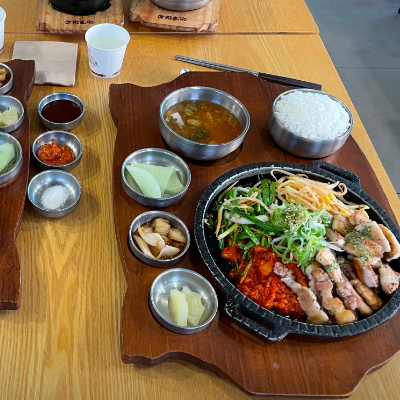 자주 가기두하고 엄청 좋아하는 집입니다. 삼겹살 한상에 고기 사이즈업 해서 먹었는데 많이 먹는저로썬 대만족하는 곳입니다.