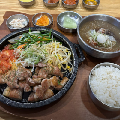 삼겹살에 물냉 조합 너무 좋았고 소갈비에 파채두 맛나요.