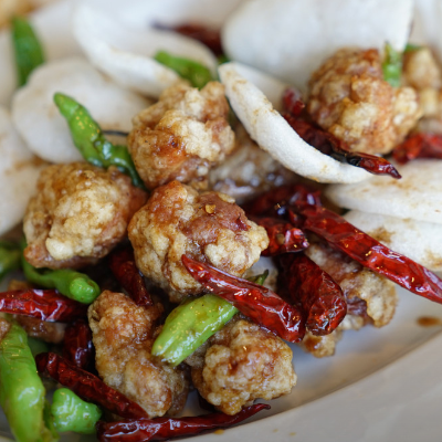 점심식사로 중화제육덮밥과 깐풍기, 산동식 야끼만두를 주문했어요. 고추기름에 볶은 돼지고기와 야채와 버섯 등이 가득 들어있는 중화제육덮밥 매콤하면서도 맛있어요.