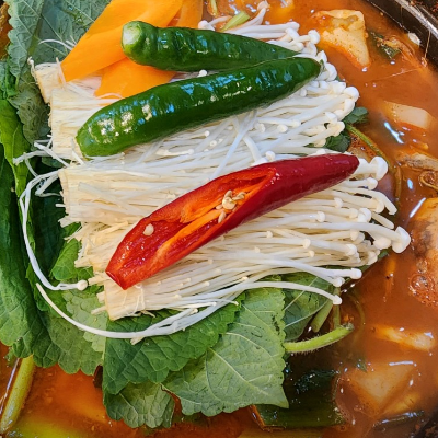 밥과 수제비와 중면이 안에 들어간 상태로 내오고 잡내도 없고 맛있었어요.