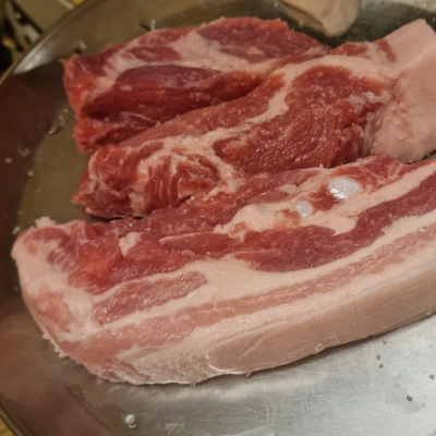 국내산 듀록 오겹살 맛있게 숙성된 고기가 부드럽고 야들야들 껍질까지있어 쫀득쫀득 맛있어요.