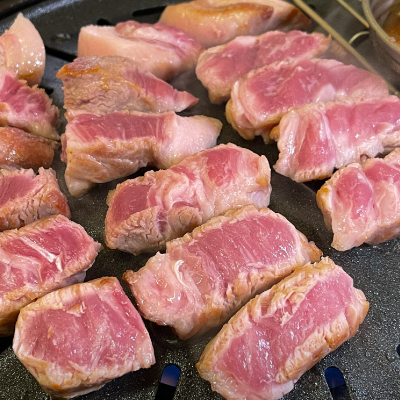 쫄깃한 살이 맛도 있고 좋아요. 듀록은 부드럽고 숙성한 목살은 특유의 맛이 있어 둘다 강추합니다.