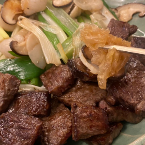 1++한우채끝등심, 키조개관자, 문어, 표고버섯,제공되어 삼합으로 즐기시는 대표메뉴입니다.
