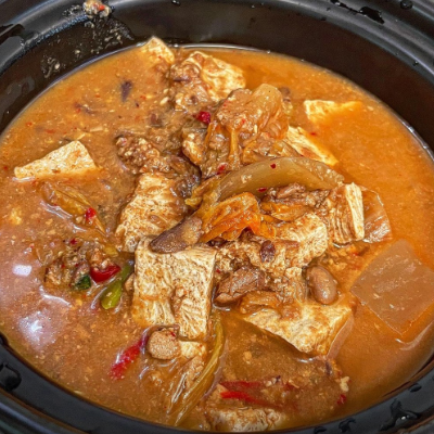 순두부는 시중에 파는 찰랑찰방 쉽게 으깨지는 두부가 아닌 직접 만든 꽤 단단한 순두부로 끓이는 것 같아요.