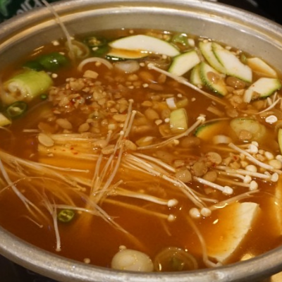 양푼이 된장찌개에 소면 두 번 세 번 추가해 주세요. 진짜 대박입니다. 진짜 너무 맛있게 먹고 가요.