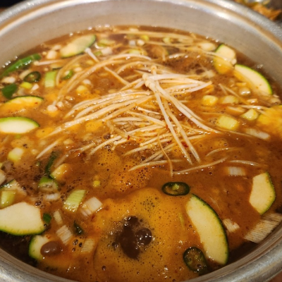 양푼이 된장찌개에 소면 두 번 세 번 추가해 주세요. 진짜 대박입니다. 진짜 너무 맛있게 먹고 가요.