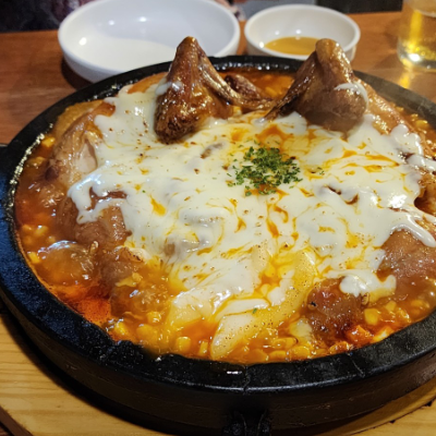 치킨만 먹어도 맛있는데 치즈에 콘에 철판에 늘러붙은 오독오독한 누룽지까지 제대로 다 먹었어요.