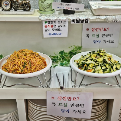 국수도 있고 닭곰탕 국물이 나와서 좋았어요. 잡채도 맛이 좋아요.