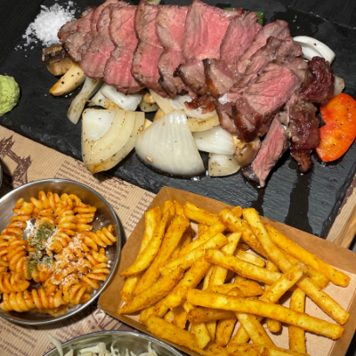 정말 맛있게 잘 먹었습니다. 스테이크는 촉촉하고 파스타는 진하고 맛있었어요.