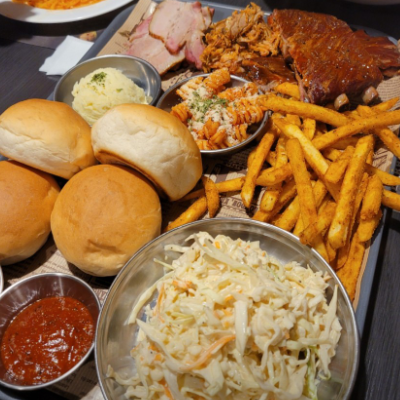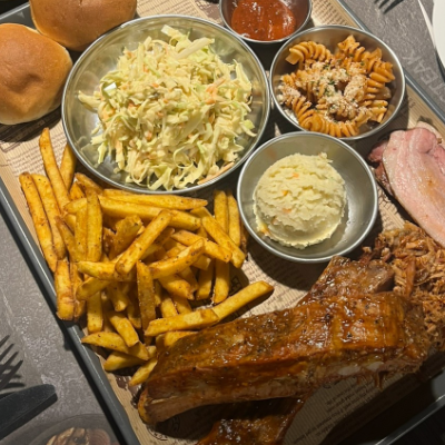 다른곳 바베큐 보다 월등하게 맛있습니다. 2인 플레이트를 시켜도 둘이 먹고 남을 정도로 양이 많아요.