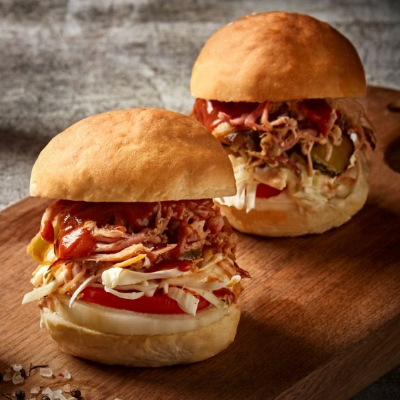 바비큐 스페셜 포크의 딱 맛있게 구워진 모닝빵에 코울슬로와 바비큐 샌드해서 미니버거 만들어 맛나게 먹었어요.