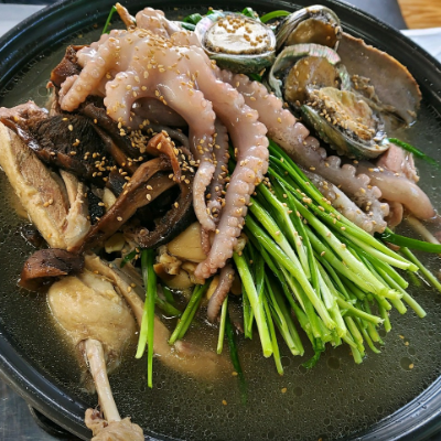 낚지와 전복등 해산물이 푸짐하게 들어있었고 낚지가 오동통하고 싱싱했어요.