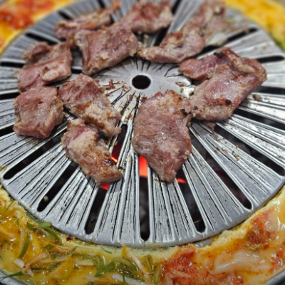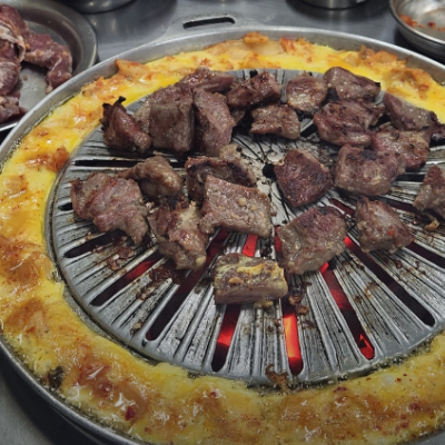 숯불에 구워먹는 갈매기살 고기가 진짜 맛있어요. 그리고 불판에 구워먹는 계란찜이 별미네요.