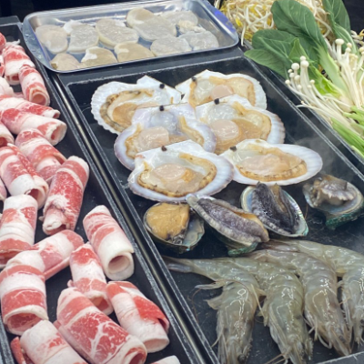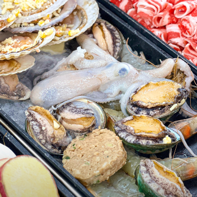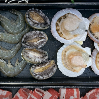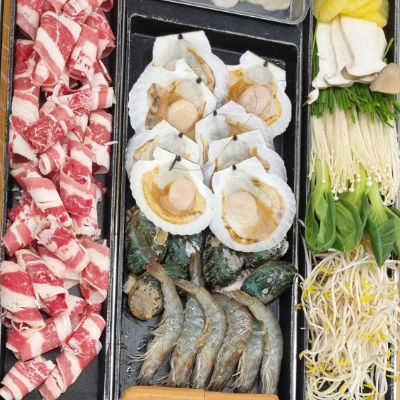 싱싱한 전복 새우 관자 가리비에 푸짐한 양의 고기와 야채, 정말 너무 맛있어요.