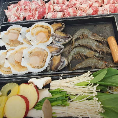 요런 조합 생각해내신 사장님의 아이디어 칭찬합니다. 조개와 다양한 해산물 거기에 고기에 채소는 맛이 없을 수 없는 조합인것 같아요.