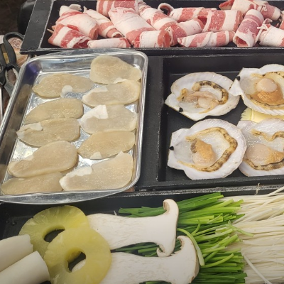 불판에 여러가지 재료들을 한번에 구울 수 있어서 좋았고 대천해수욕장 바로 앞에서 바다를 보면서 육해공삼합구이를 즐길 수 있어서 더 힐링되고 좋았어요.