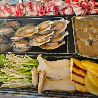 요런 조합 생각해내신 사장님의 아이디어 칭찬합니다. 조개와 다양한 해산물 거기에 고기에 채소는 맛이 없을 수 없는 조합인것 같아요.