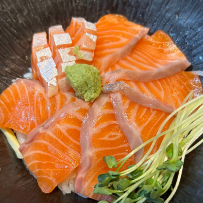 사시미동으로 연어를 먹었는데 연어가 두툼하고 날치알, 대게장갈은것, 양파타르타르 소스 무침이 있어서 잘 먹었어요.