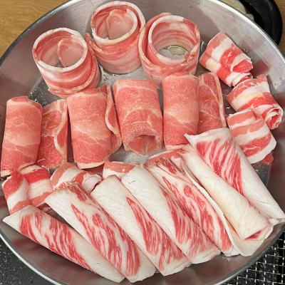 가성비도 좋구요, 대패삼겹 대패목살 차돌박이 한우차돌박이 오리고기 종류별로 1개씩도 다 주문이 돼요.