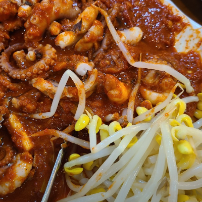 낙지다리가 엄창크네요. 양념이 매콤해서 속이 뻥 뚫리는 느낌이 듭니다.