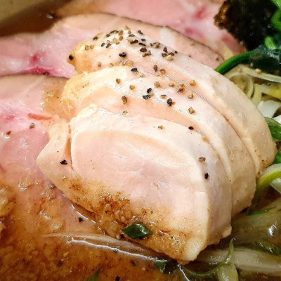 쇼유 라멘과 동일한 고기 토핑류 큼직한 목살 부드러운 수비드 닭가슴살 조화로워요.