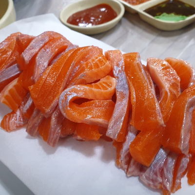 송어회 무한리필로 즐길 수 있는 곳이예요. 신선한 회를 양껏 먹고 왔습니다.