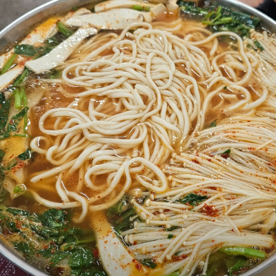 개봉동의 오래된 칼국수집입니다. 버섯매운탕에 국수 말아먹는 맛이예요. 양도 엄청 넉넉해요.