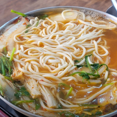 개봉동의 오래된 칼국수집입니다. 버섯매운탕에 국수 말아먹는 맛이예요. 양도 엄청 넉넉해요.