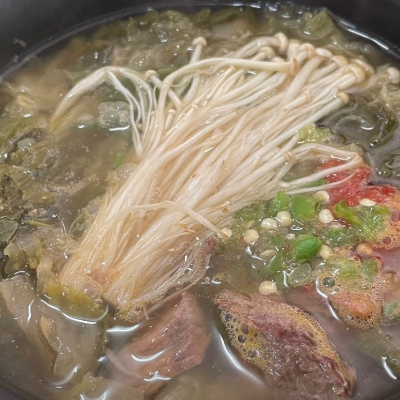 한우베이스 육수의 칼수입니다. 푸짐한 양이 맘에 듭니다. 국내산 김치라서더 좋아요.