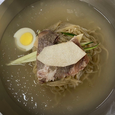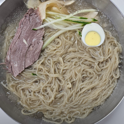 육수는 여타 식당처럼 육향으로만의 묵직함이 아닌 무,배,다시마등과 함께한 간간함을 보여주는 냉면입니다.