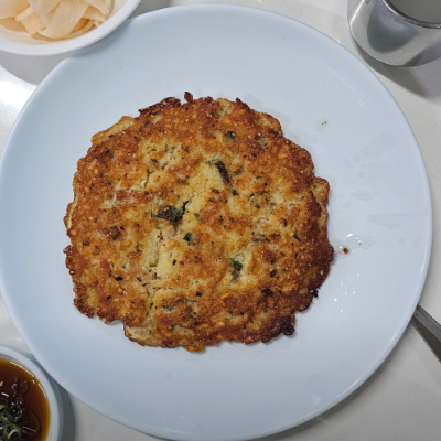 웨이팅을 감수해야 하지만 그럴만한 가치가 있습니다. 곁들임 메뉴인 녹두전은 흡사 육전이며 식감이 아주 바삭합니다.