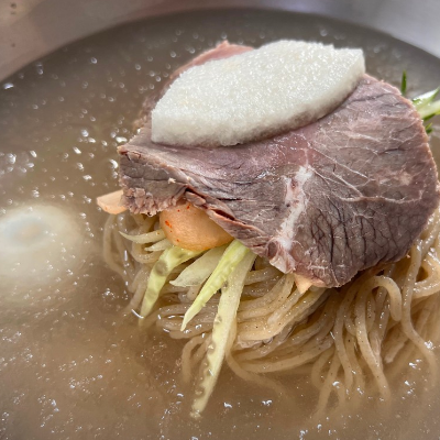 육수는 여타 식당처럼 육향으로만의 묵직함이 아닌 무,배,다시마등과 함께한 간간함을 보여주는 냉면입니다.