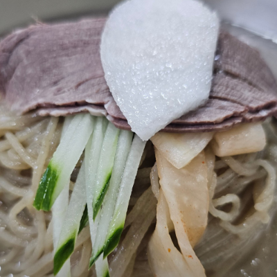 진짜 더울땐 살얼음 동동 떠있는 육수가 땡기겠지만 육수의 진한맛을 느끼고 싶다면 거냉으로 드세요.