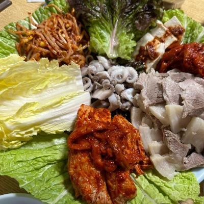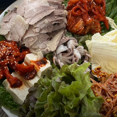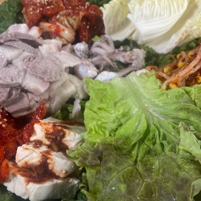 모듬보쌈 시켰어요. 굴이 좀 더 나왔으면 더 좋았을테지만 무김치도 맛이 좋아요. 굴이랑 고기도 맛납니다.
