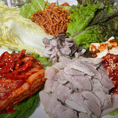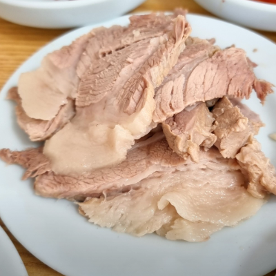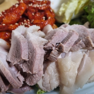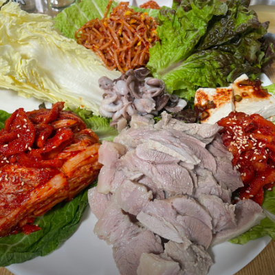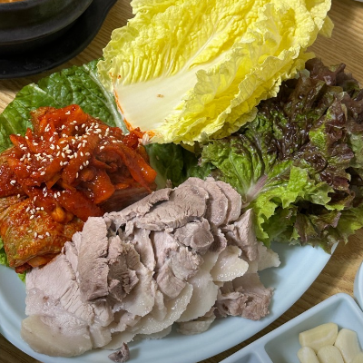 고기를 바로 삶아 내놓는 수육이 잡내 없이 괜찮아요. 보쌈김치도 신선합니다.