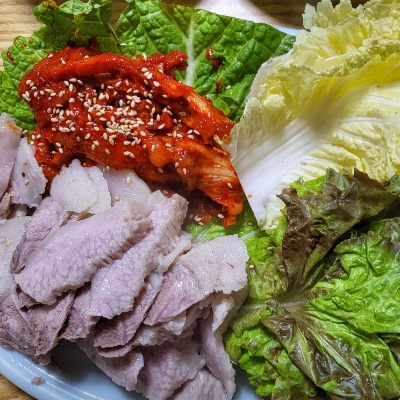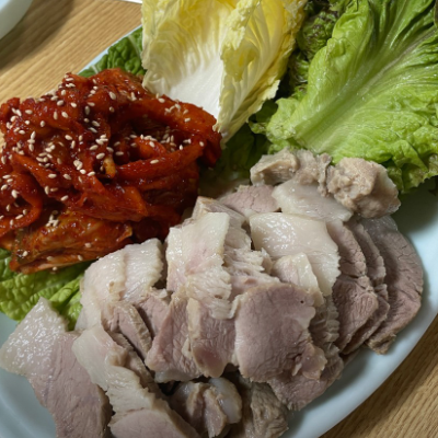 장군보쌈 주문했는데 배추에 싸먹으니까 너무 맛있고 고기 진짜 부드러워요.