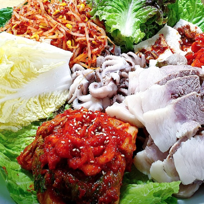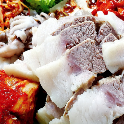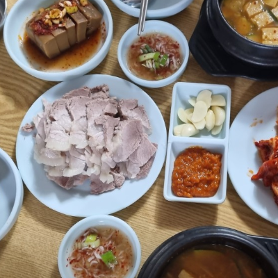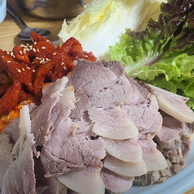 고기를 바로 삶아 내놓는 수육이 잡내 없이 괜찮아요. 보쌈김치도 신선합니다.