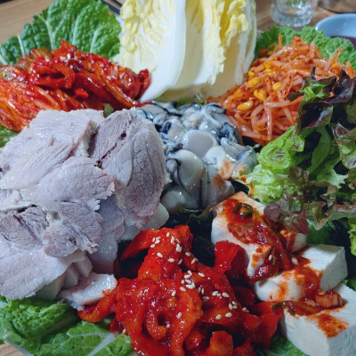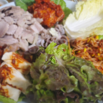 모듬보쌈 시켰어요. 굴이 좀 더 나왔으면 더 좋았을테지만 무김치도 맛이 좋아요. 굴이랑 고기도 맛납니다.